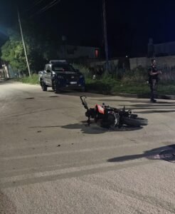El choque se produjo a las ocho de la mañana en la intersección de las calles San Martín y Gaudard, donde colisionaron un automóvil y una motocicleta que, tras el impacto, se incendió por completo. Es el tercer accidente registrado durante el fin de semana