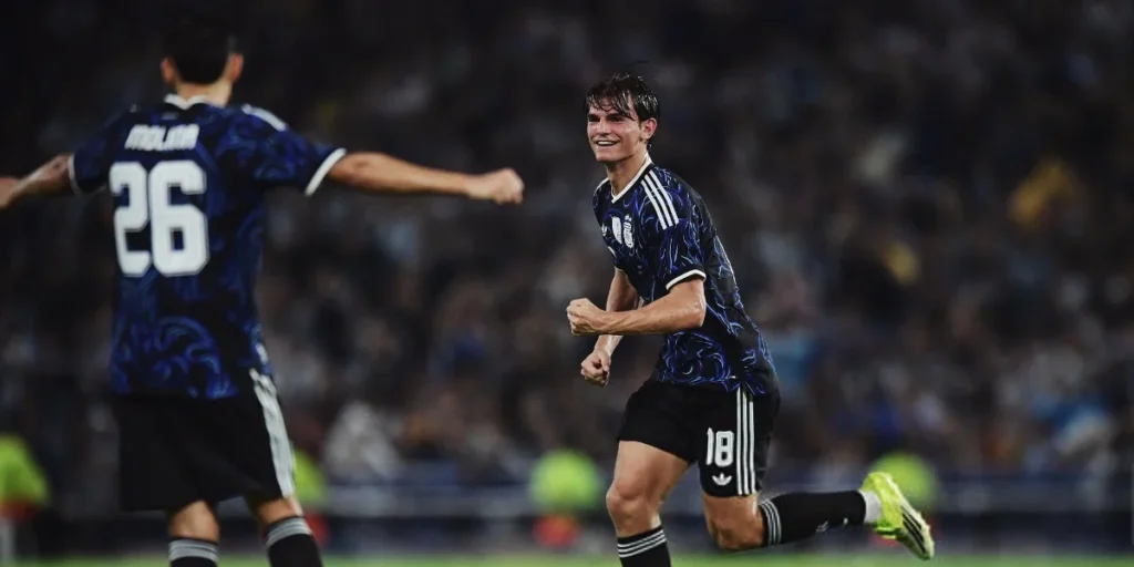 El conjunto argentino dominó el primer tiempo y se puso en ventaja a los 17 minutos con un gol de Enzo Fernández, tras una buena asistencia de Nahuel Molina. Más tarde, Nicolás Paz amplió la diferencia con un gran tiro libre, marcando su primer tanto con la camiseta nacional.